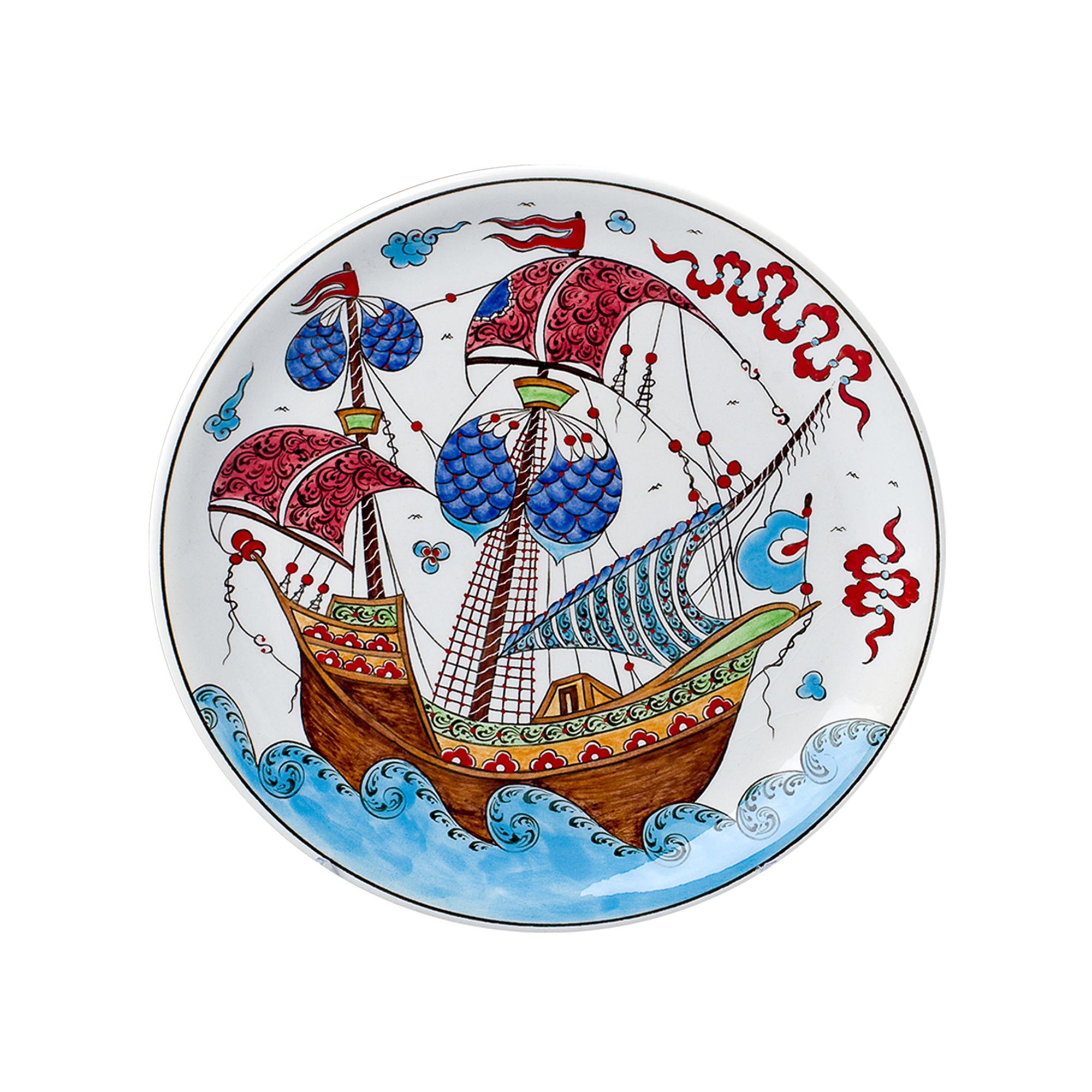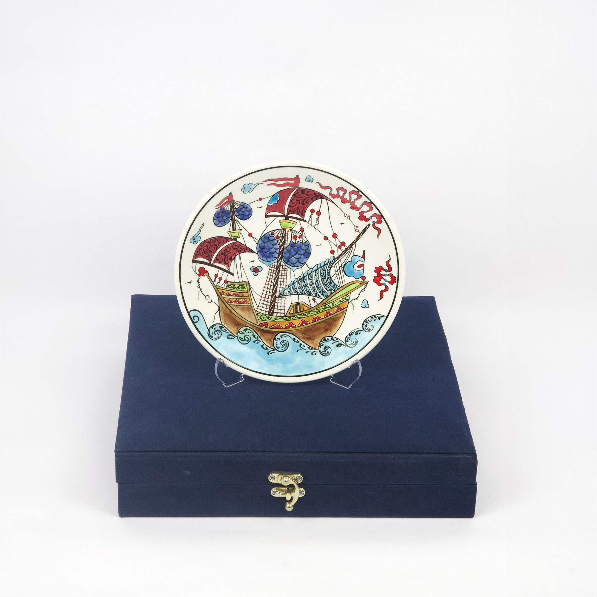 This artwork is inspired by classic Ottoman Kalyon miniature designs and has been created using the underglaze technique. Each piece is meticulously handmade, reflecting the rich heritage and artistry of its origins.