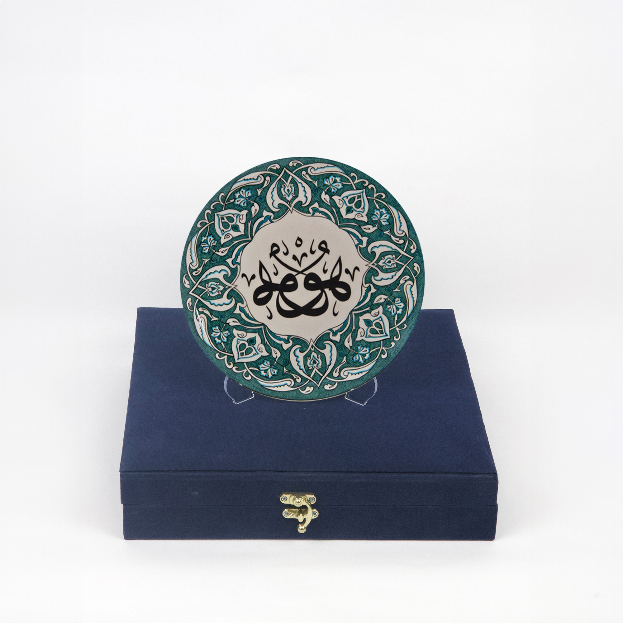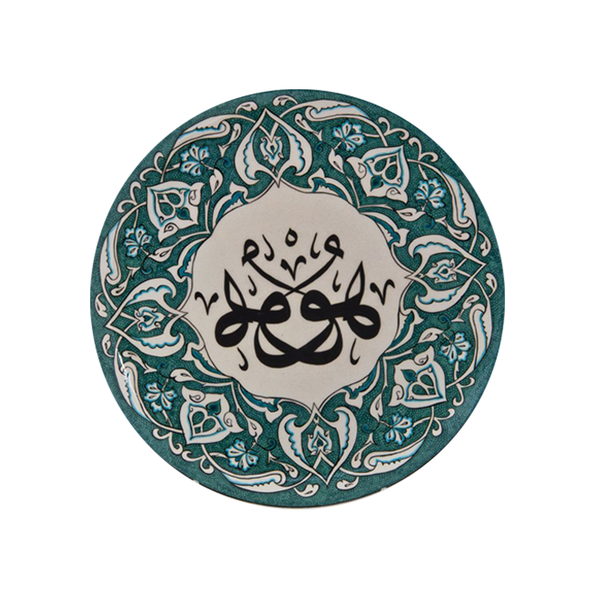 This piece is a special design created with Rumi motifs and Hu calligraphy, crafted using the underglaze technique. Each piece is meticulously handmade, celebrating the timeless elegance and rich cultural heritage of these traditional patterns.