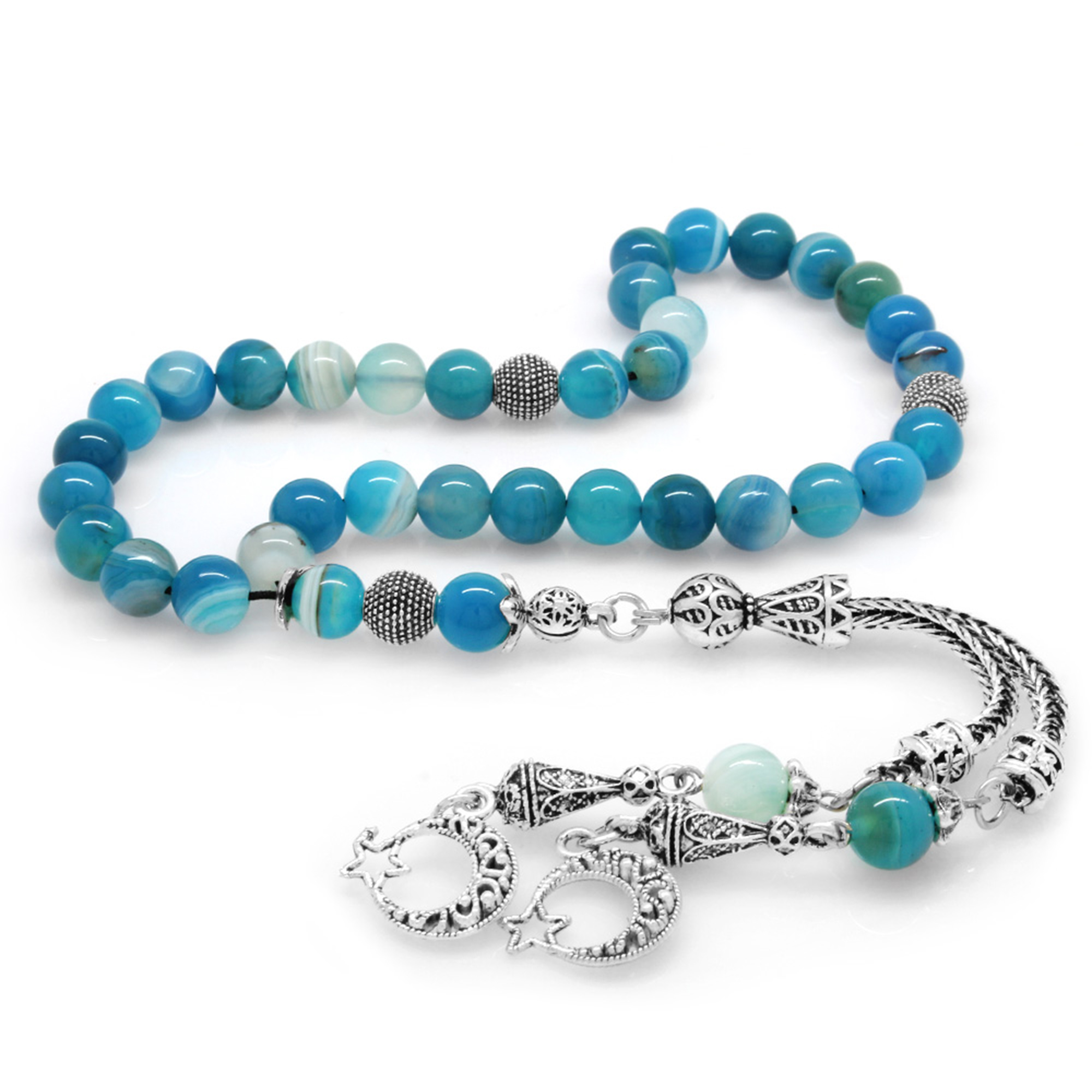Blue-White Agate Natural Stone Rosary